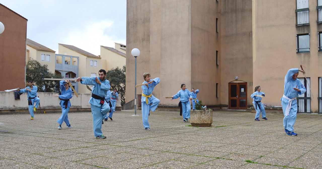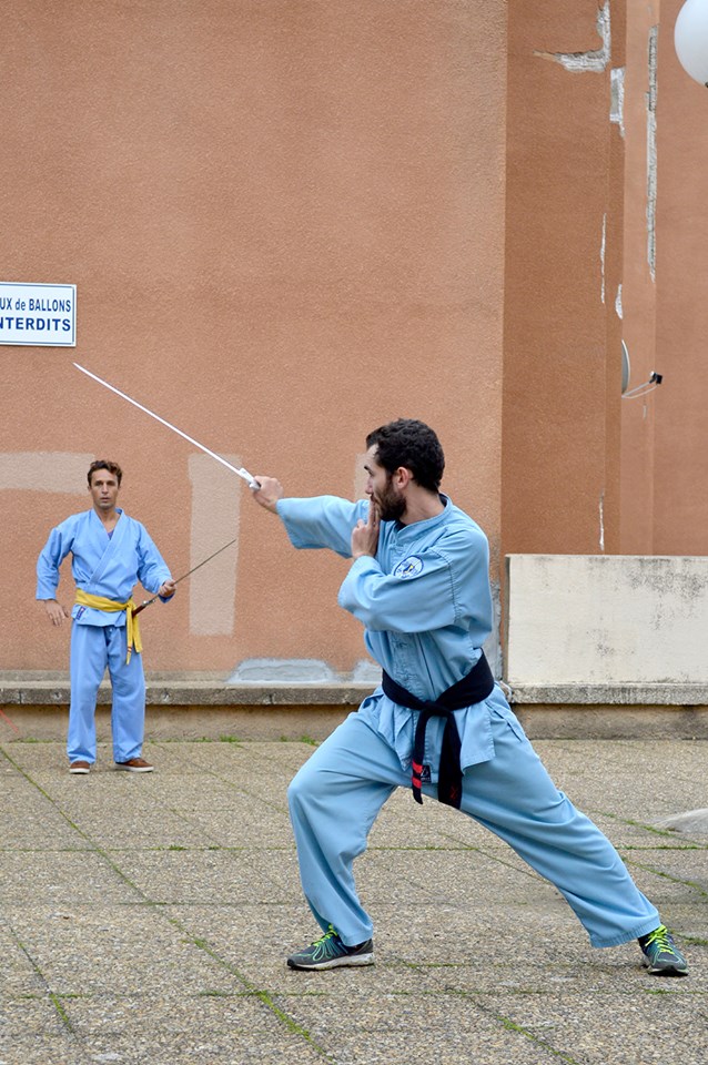 Voilà quelques photos lorsque Maître Jacques Tran Van Ba est venu sur Ajaccio pour enseigner l’enchaînement au sabre de la fleur de lotus.